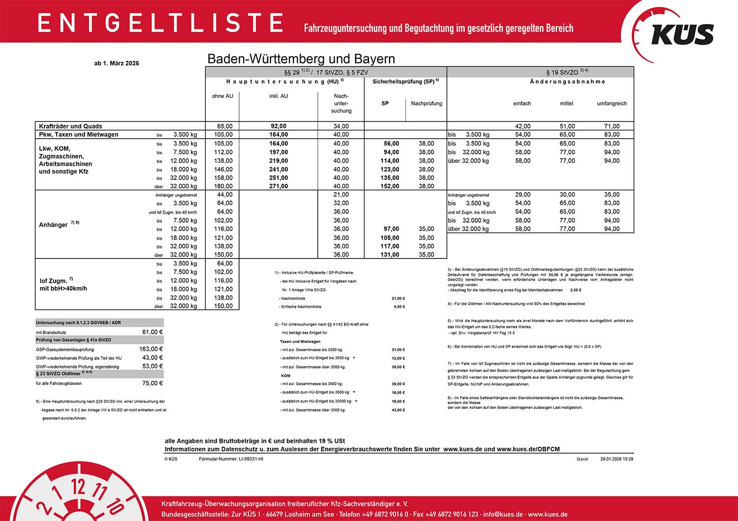 • Hauptuntersuchung (HU) mit Teiluntersuchung zum Abgasverhalten (AU) gemäß §29 StVZO